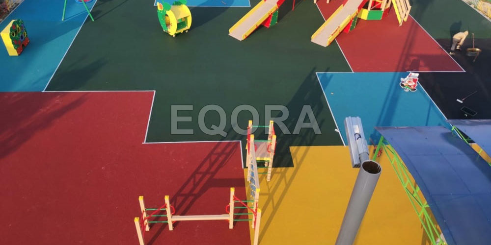 Детская площадка - многоцветная резиновая поверхность |